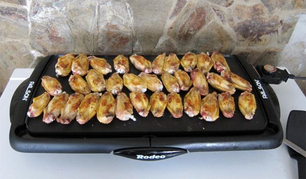 Куриные крылышки на ней тоже очень душевно выходят (минут по 10 на стороне).