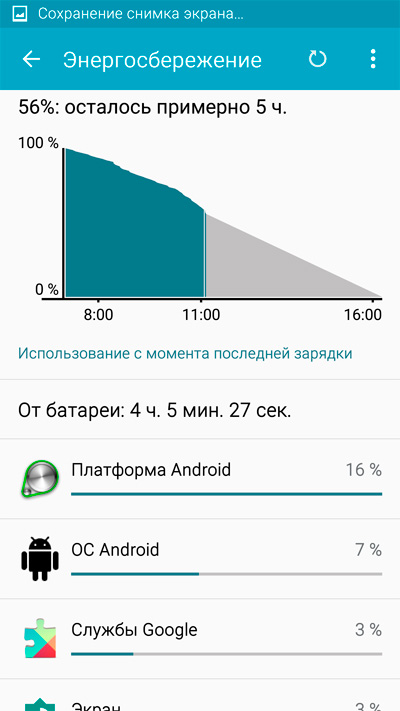 Я, разумеется, залезал в раздел энергопотребления чтобы понять - кто же жрет аккумулятор. "Андроид" жрет - вот скриншот.