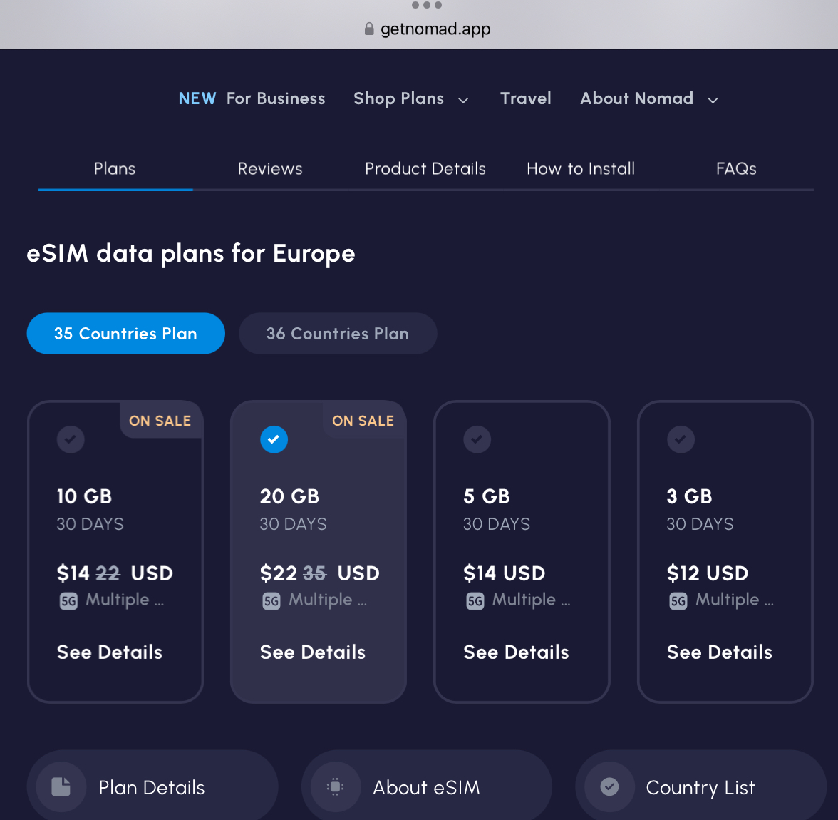 35 европейский стран за $22 на 30 дней и 20 гиг траффика без телефона (он мне не нужен, у меня основной номер от Google Voice).