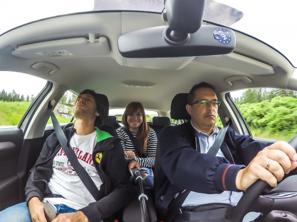 Лучшая, как я считаю, фотография из нашей поездки, сделанная Ольгой Растегаевой. Она просто просунула камеру Go Pro на палке-селфи к ветровому стеклу: я думал, что она снимает себя, а она сняла всех нас. Сергей Анашкевич дрыхнет (вместо того, чтобы развлекать меня за рулем), я недоуменно смотрю на какую-то хрень, которая болтается под ветровым стеклом, а Ольга оттягивается. По-моему, очень прикольно получилось.