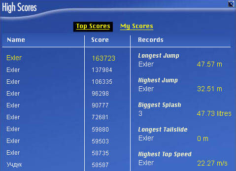 А как сделать так, чтобы вместе засчитывались прыжки и до. и после касания воды. Ну..то есть: дельфин выпрыгивает из воды. делает какие-то кувырки и т.п., потом падает опять в воду. я его сразу же направляю обратно и т.п. А вот в скриншоте выше видно, что вместе перечислены и засчитаны элементы, явно сделанные в несколько "приемов", например, несколько раз Tailslide.