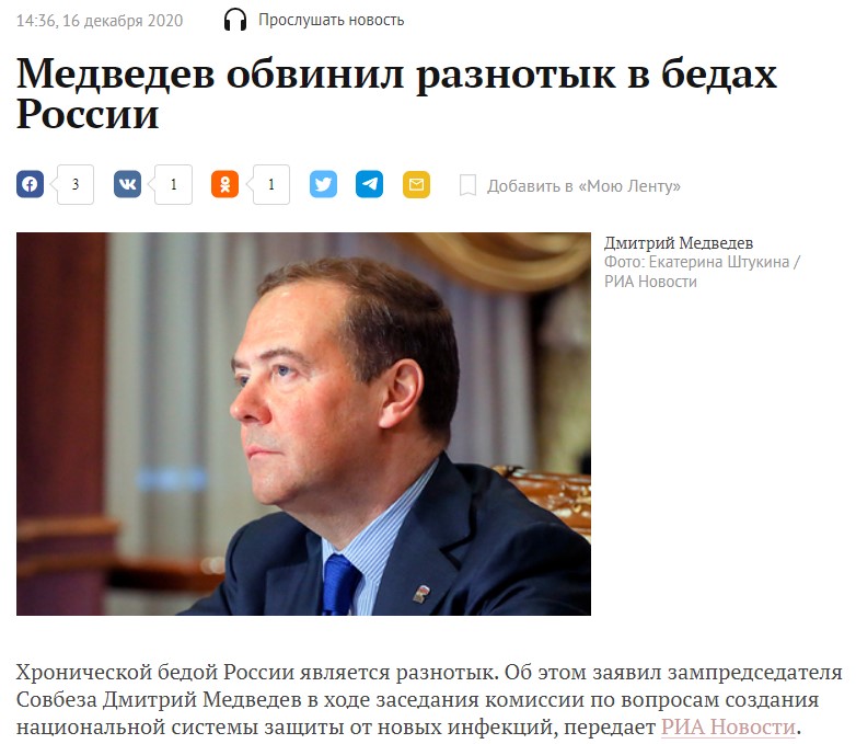 Медведев обвинил разнотык в бедах России