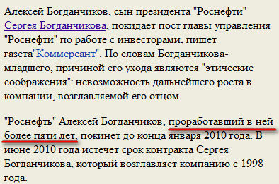 Не меньше насмешил заголовок в "Коммерсанте". "Роснефть" теряет сына президента". : -)