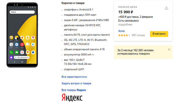 P.S. если Вы ненавидите Яндекс, или вообще все, что сделано в России, то можно так и написать. По мне - не самый удачный телефон, но вполне себе возможный на рынке, а заказ у изготовителя до 8К штук намекает, что на особый рыночный успех никто и не рассчитывал.