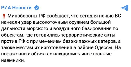 Минобороны отчиталась об уничтожении еще одного важного военного объекта - самого крупного в Одессе православного храма  Спасо-Преображенского кафедрального собора, относящийся к Украинской православной церкви (Московского патриархата). Это была законная военная цель: ведь если бы армия РФ не уничтожила этот собор, то его бы захватили сатанисты. А патриарх Гундяев заявил РИА "Новости", что он еще вчера отозвал свое освящение этого собора, так что армия РФ обстреляла неосвященный собор, поэтому не считается ни разу.