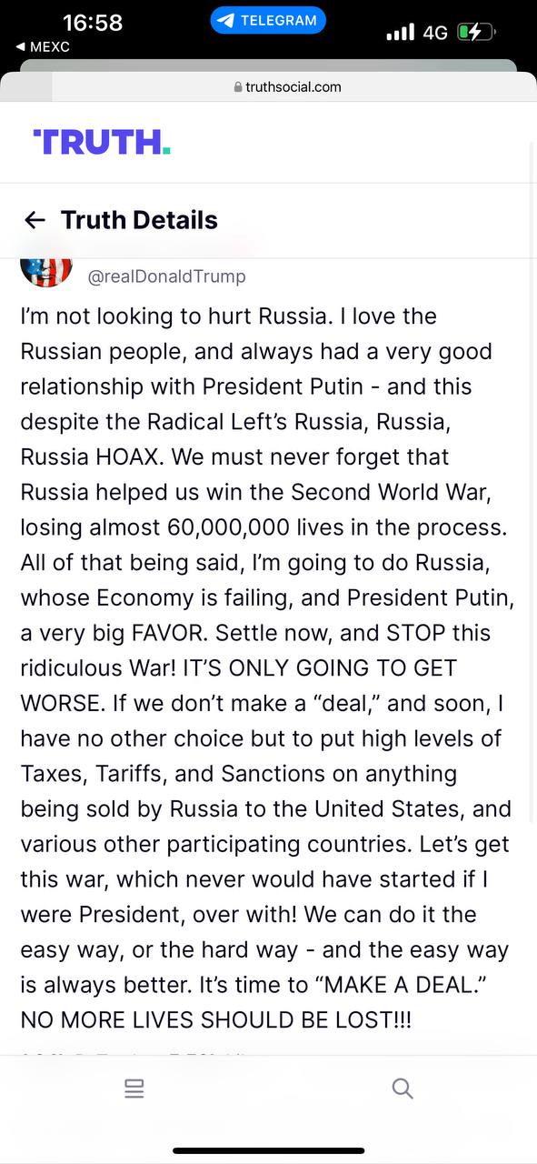 По-моему, там вполне однозначно одобряются и легитимизируются все "цели СВО" и обещано признание победы в комплекте со снятием всех санкций. Другое дело, что американский путин зарекомендовал себя как абсолютный лжец, наравне с путиным российским, поэтому, вряд ли он сделает хоть что-то в курсе этого заявления.