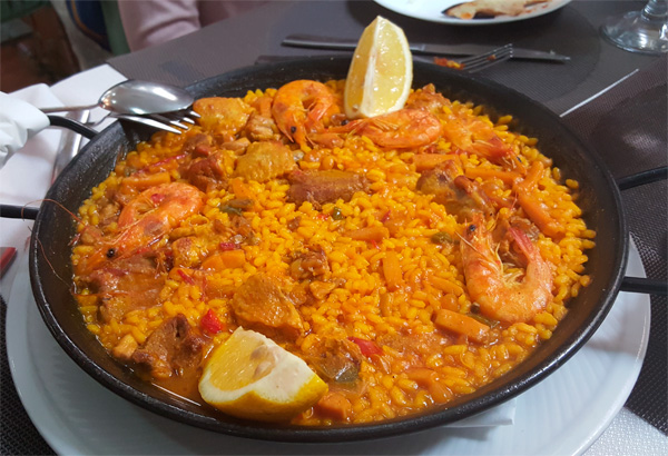 Гранада, ресторанная улочка. После прогулки по городу зашли в один из маленьких ресторанчиков пообедать. Заказали паэлью по-валенсийски.