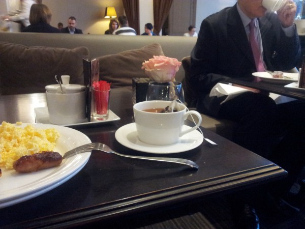 Интересно, что заставляет людей на завтрак приходить в костюмах с галстуками? Из десяти мужчин на завтраке в отеле семеро - в костюмах.