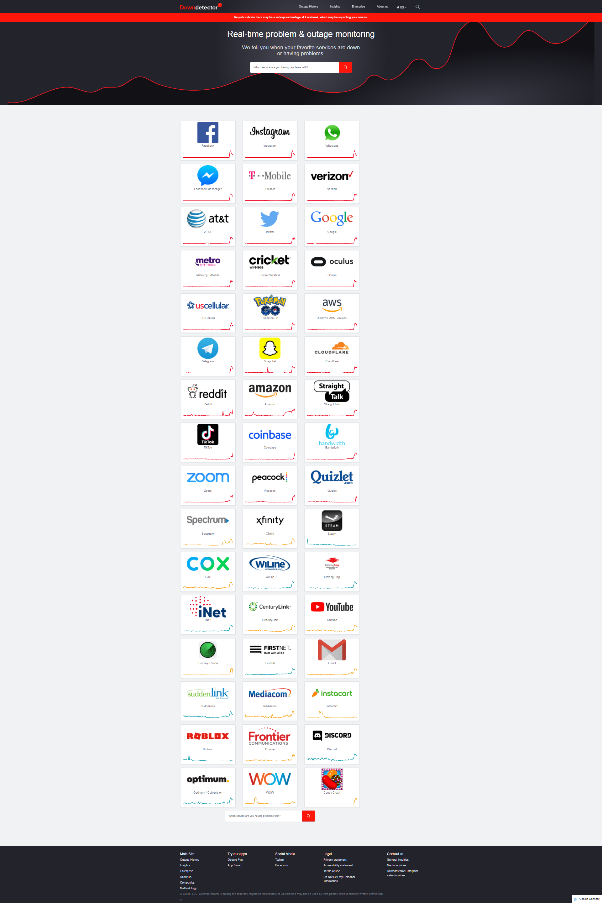 Судя по графикам на Downdetector, там проблемы вообще чуть ли не у всех крупнейших сервисов.