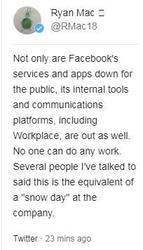 Представитель Facebook Энди Стоун принес пользователям извинения за неудобства. «Мы знаем, что у некоторых людей возникают проблемы с доступом к нашим приложениям и продуктам. Мы работаем над тем, чтобы как можно быстрее вернуть все в норму», — заявил он.