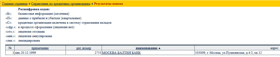 P.S. Кстати, если пробить номер их "лицензии" на сайте ЦБРФ, то выдается следующее.