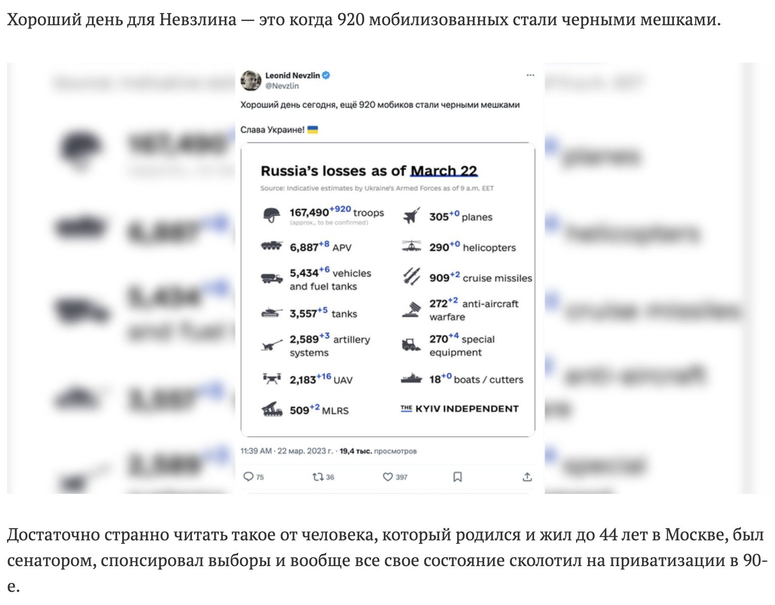 Очень сомнительные мотивы Невзлина, которые ФБК без затей объясняет ненавистью на почве зависти к политическим успехам (и разыгралась эта ненависть именно сейчас, ага, когда успехов у российской оппозиции ноль, а не 10 лет назад на пике популярности Навального).
