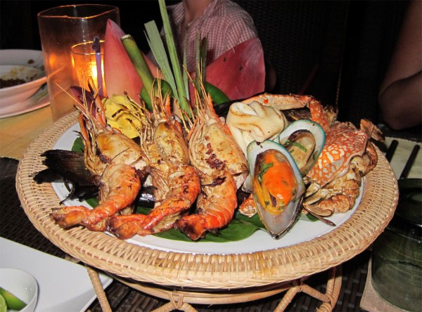 Большое блюдо с морепродуктами в варианте тайского очень пафосного ресторана выглядело вот так.