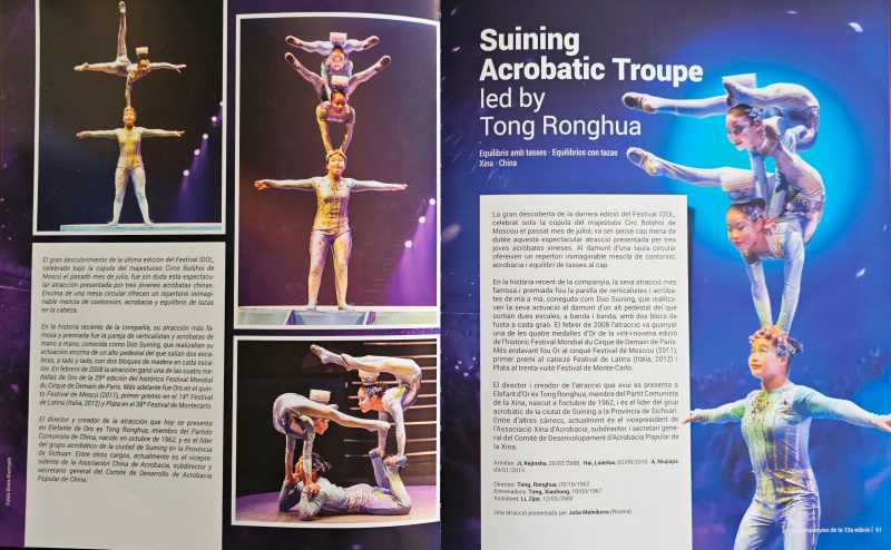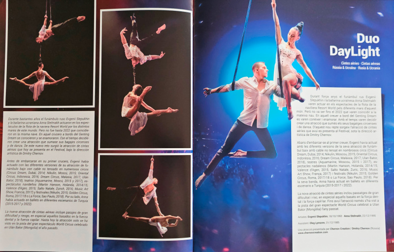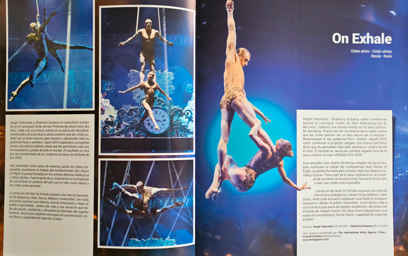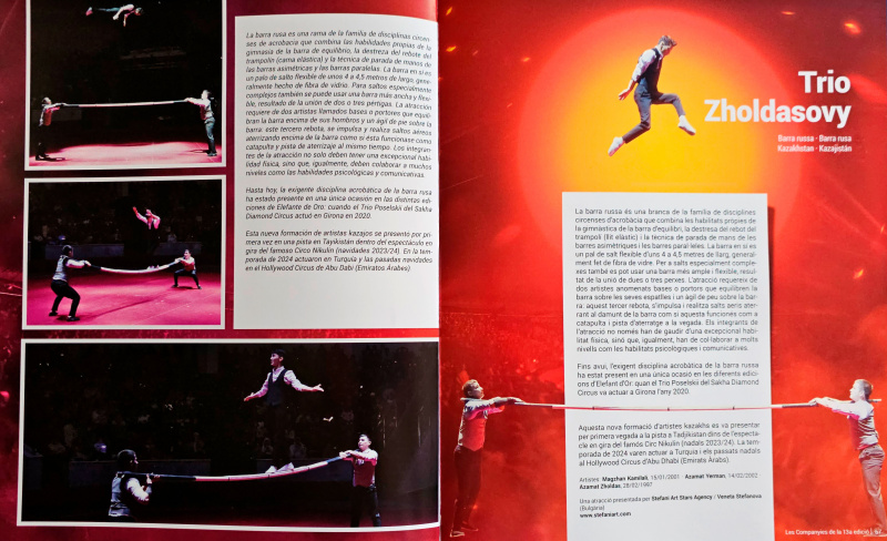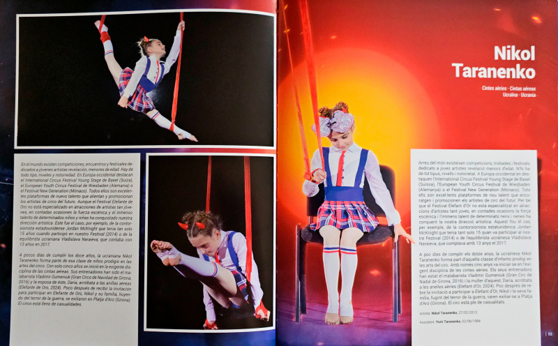 Мы каждый год ездим на финал Фестиваля цирка "Золотой слон" в Жироне. На фестивале выступают молодые артисты цирка из многих стран, в жюри фестиваля сидят отборщики лучших цирков мира. А в финале показывают лучшие номера из предыдущих двух представлений.