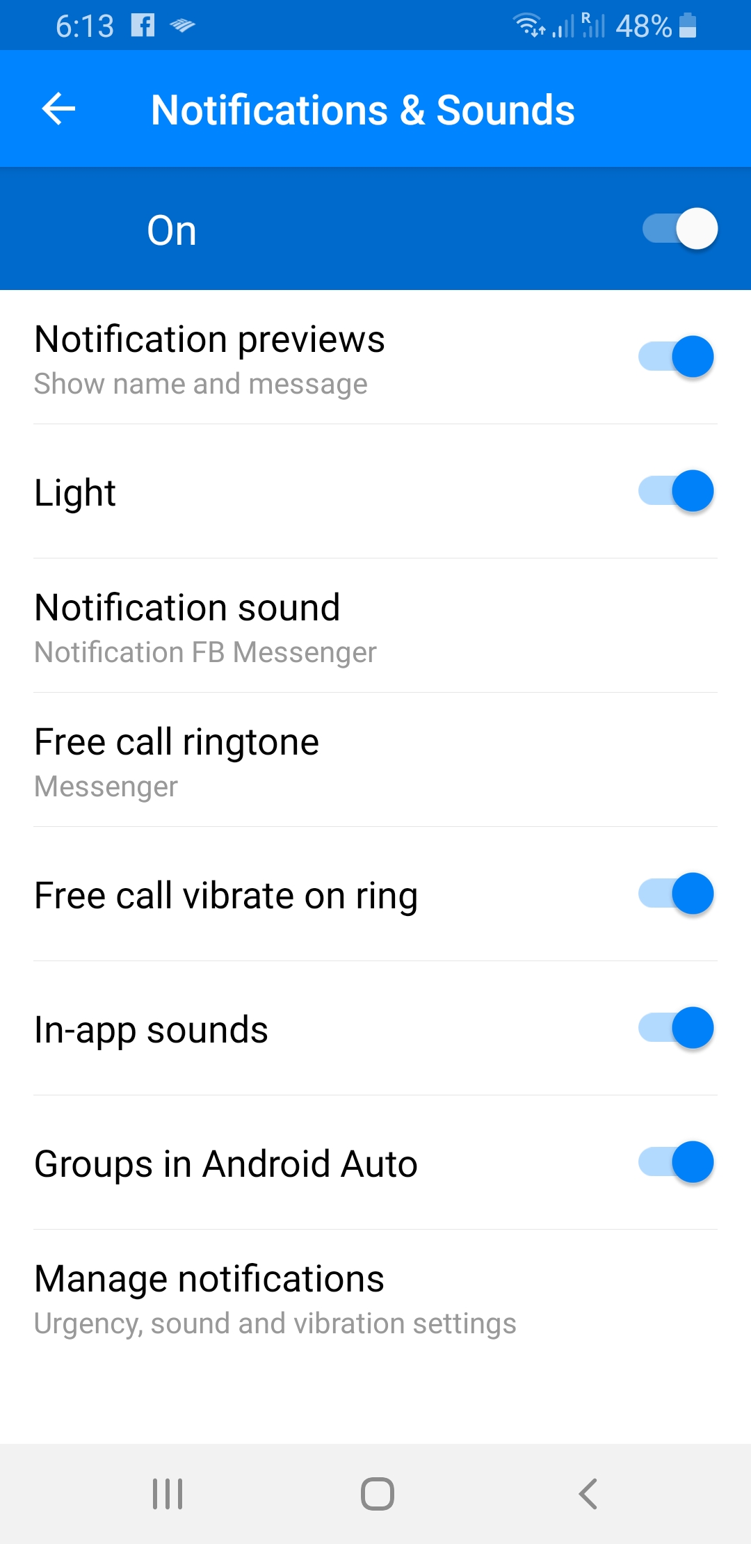 Настройки - Программы - Messenger - Уведомления - Настройки приложения - Звук уведомлений