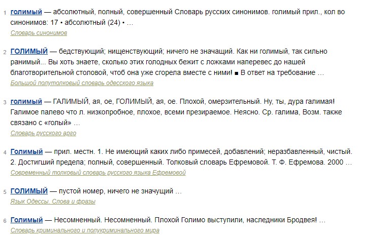 Слово «голимый» (написание через «о») удалось найти в словаре русского арго, а «гАлимый» — в словаре современной лексики, жаргона и сленга. Единственного правильного написания нет, потому что слово не зафиксировано ни в одном из значимых словарей современного русского языка. Нет его в орфографических и толковых справочниках, встречается только в словарях сленга. Удивительно, что и значения бывают разными в зависимости от контекста. Лексема «галимый» может означать не только что-то «низкосортное» (галимая попса), также на сленговом языке называют один из видов «травки», а в Одессе так говорят про нищенствующих. Загадки этимологии слова «галимый» Некоторые филологи считают, что слово образовано от прилагательного «голый», бессодержательный, бессмысленный. Например, «голимая чушь». Другие исследователи предполагают, что процесс языковой трансформации начался от слова «галиматья» (зн. — вздор). Мне кажется, что этот вариант более объясним. Слово «галиматья» было довольно популярно в начале 2000-х, но так как язык тяготеет к упрощению, появляются такие сокращения «круто» — «круть», «саудчек» — «чек», «чекаться» и т.д. Вполне возможно, что принципом упрощения от слова «галиматья» могло быть образованно жаргонное «галимый».