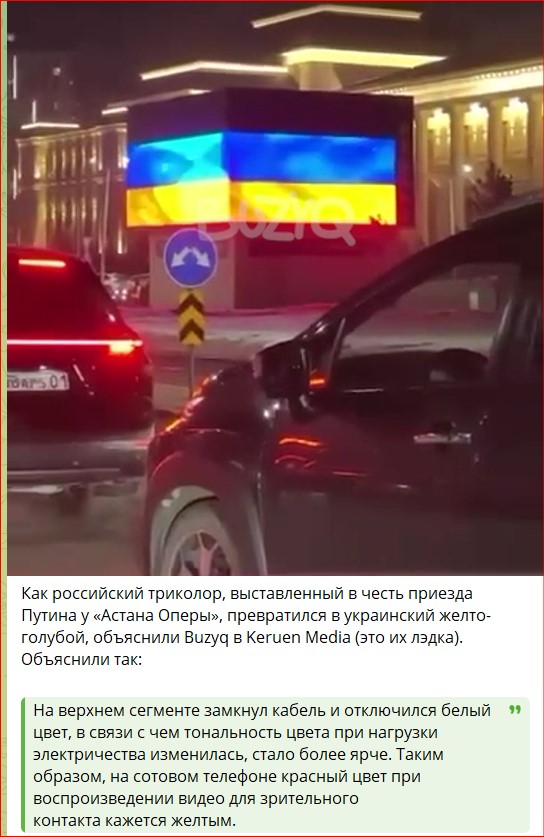 Как российский триколор, выставленный в честь приезда Путина у «Астана Оперы», превратился в украинский желто-голубой