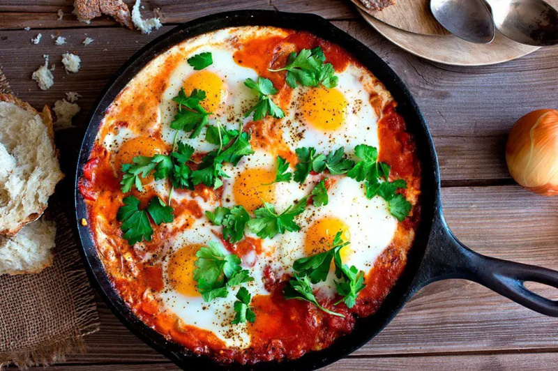 Так себе рецепт шакшуки, кстати. Вариация на тему.