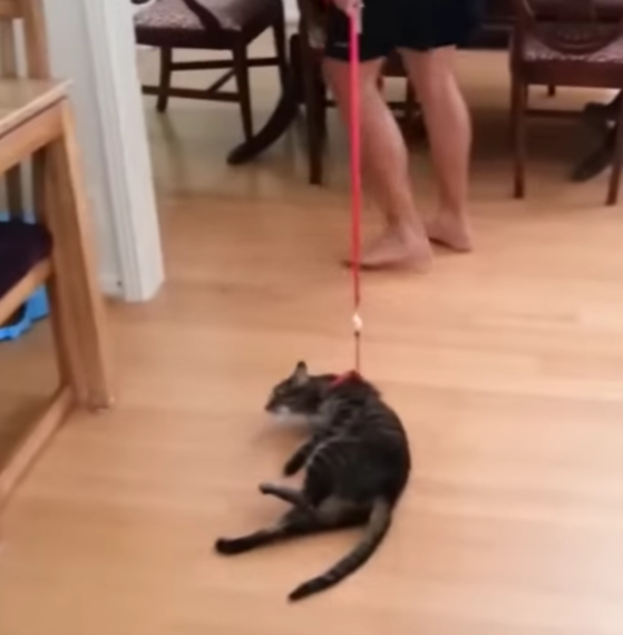 Кошку натренировал на поводке ходить? В ютубе видосиков много, мол, это целый процесс.