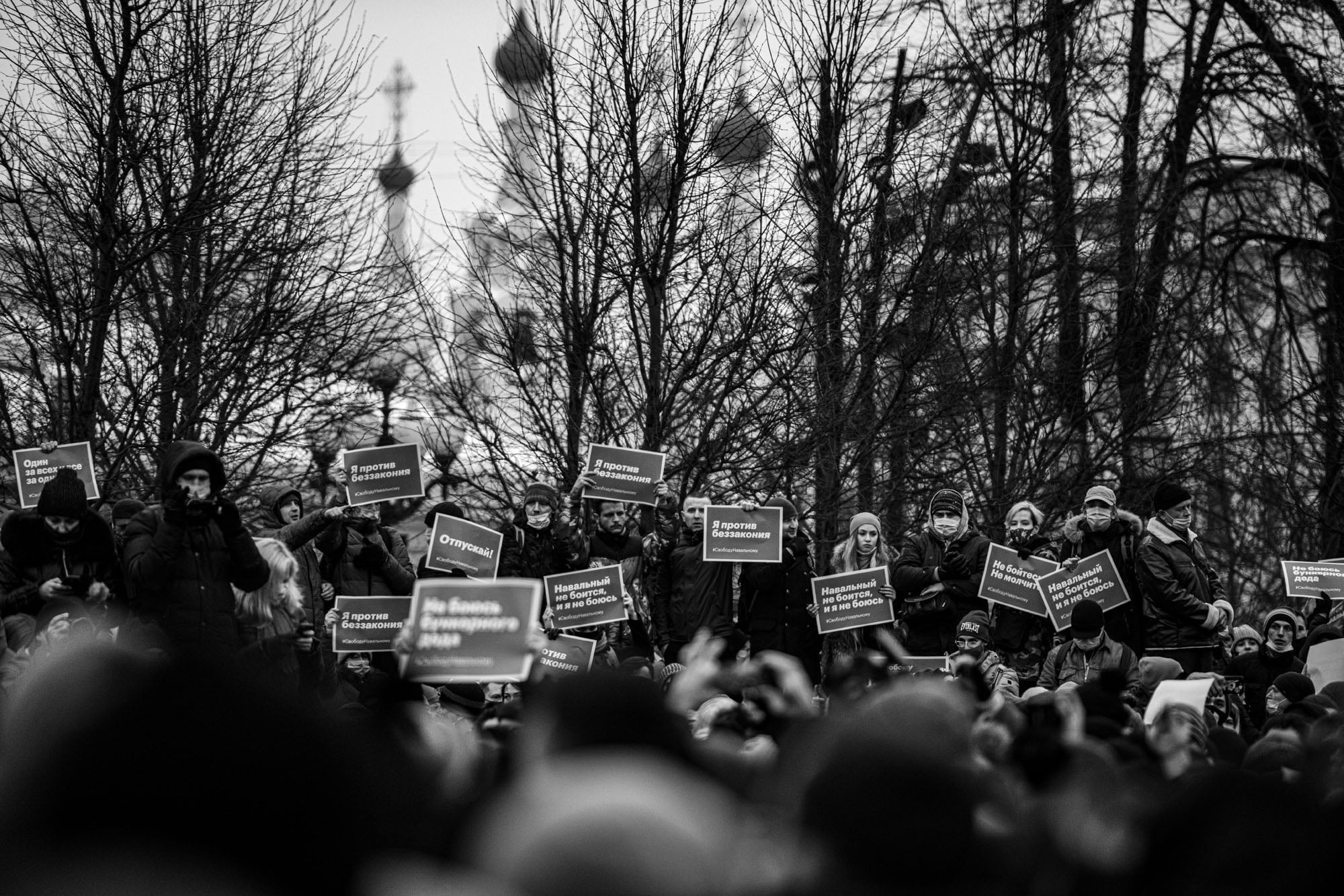 Фотографии Максима Мармура, сделанные во время акции протеста на Пушкинской площади 23 января этого года. Вот весь альбом (18 снимков), ниже - несколько примеров.