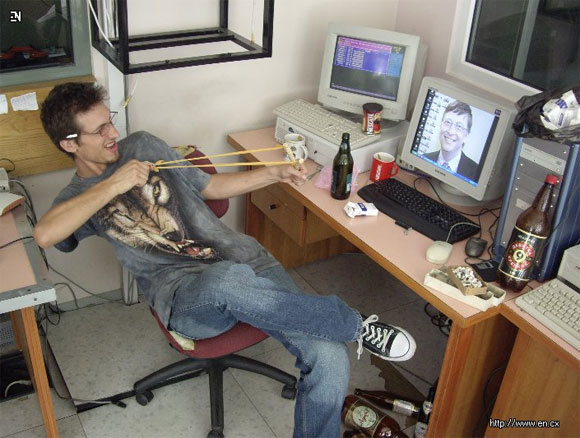 А айтишник с рогаткой сидит явно под виндой...