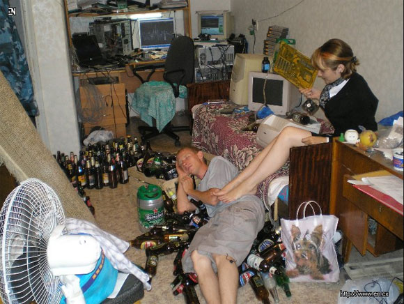В холостяцкой норе явные признаки наличия пивного алкоголизма. Это настораживает.