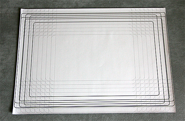 Внутри - лист размером под самую большую крышку ноута, где с одной стороны - наклейка, а другая сторона заботливо расчерчена под всевозможные форматы.