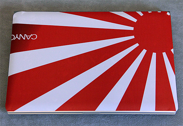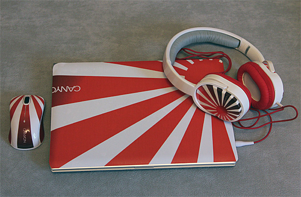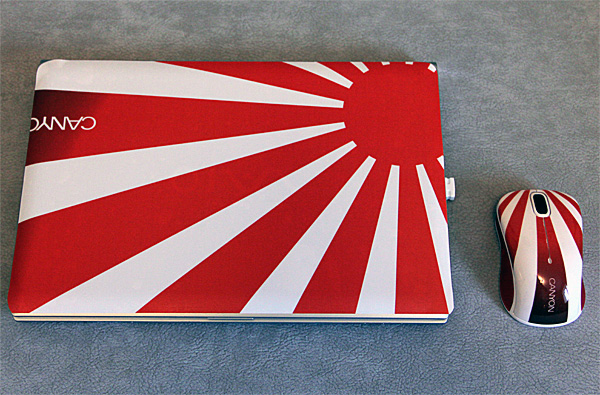 Нет, ну понятно: знаменитый Sony Vaio, отличное качество материалов и все такое. Но нетбук - совершенно новый, проработал от силы неделю. Как-то обидно видеть его в таком состоянии. И когда мне в серии от Canyon предложили дизайнерскую наклейку на крышку ноута, вот на это я и купился, согласившись также посмотреть и несколько других аксессуаров, ибо гулять так гулять.