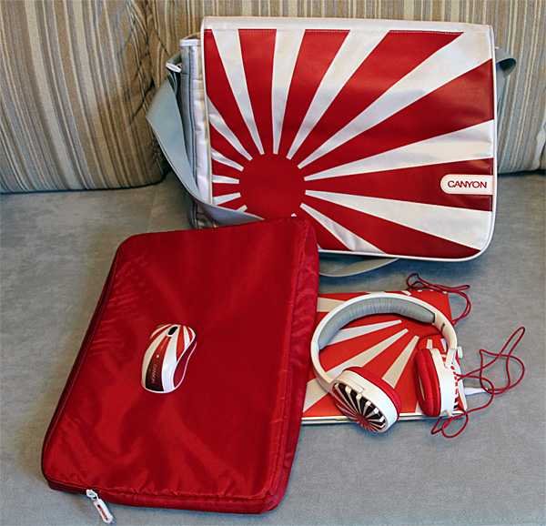 Очередной комплект гаджетов - на этот раз от компании Canyon. Тут, правда, я сначала сомневался по поводу того, брать ли это все потестировать или нет, потому что речь шла не столько о гаджетах как таковых, сколько о дизайнерской серии гаджетов и аксессуаров Canyon Rising Sun. А мне все эти дизайнерские серии, если честно, глубоко до фонаря. У компьютера должна быть хорошая начинка, а сам он может быть хоть в виде лягушки. То же касается любых других электронных устройств.