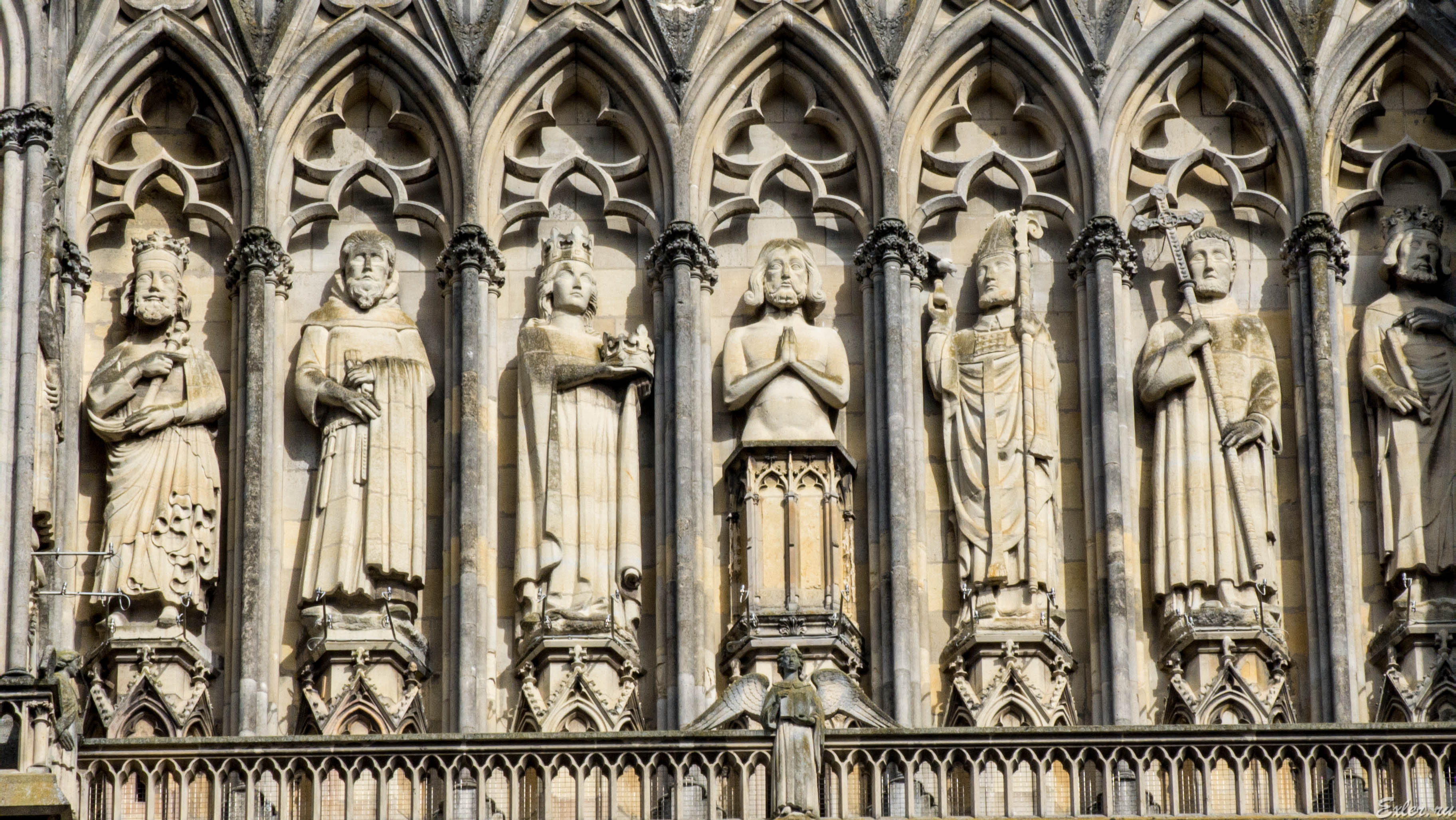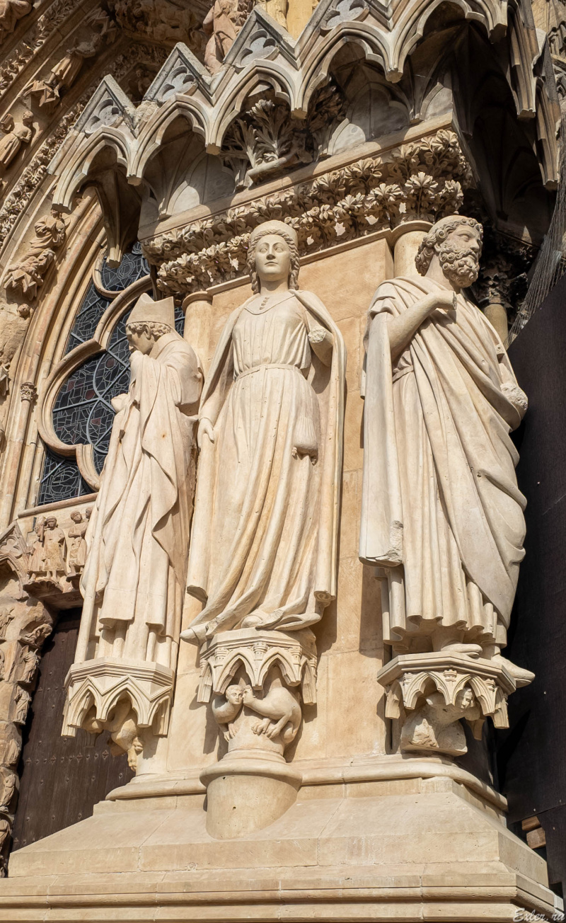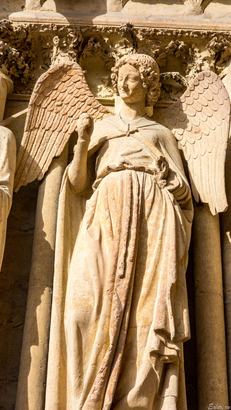 Знаменитый "улыбающийся ангел" на главном фасаде, ставший одним из символов Реймса.