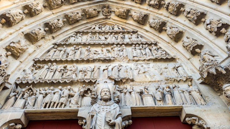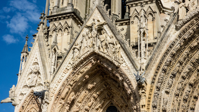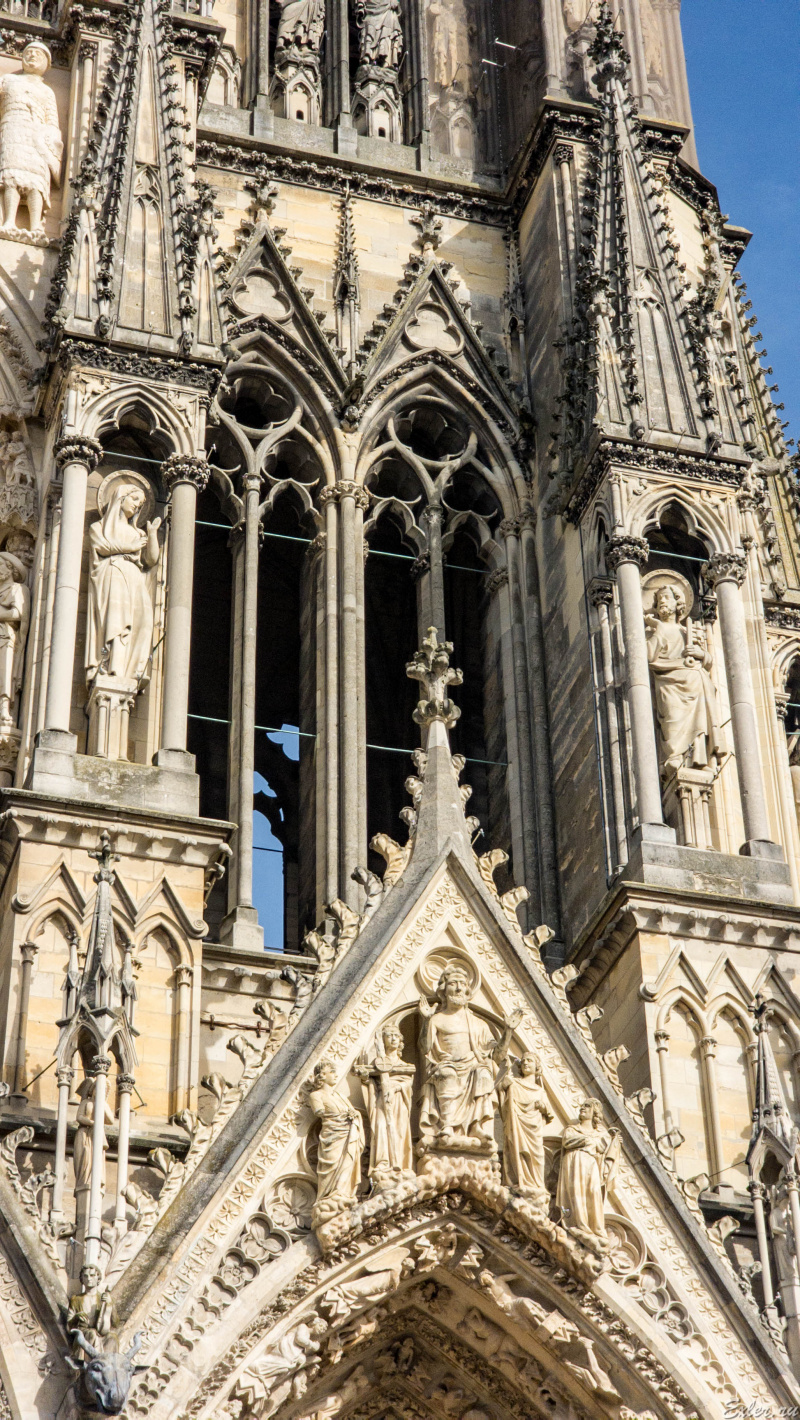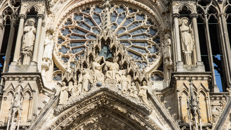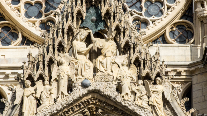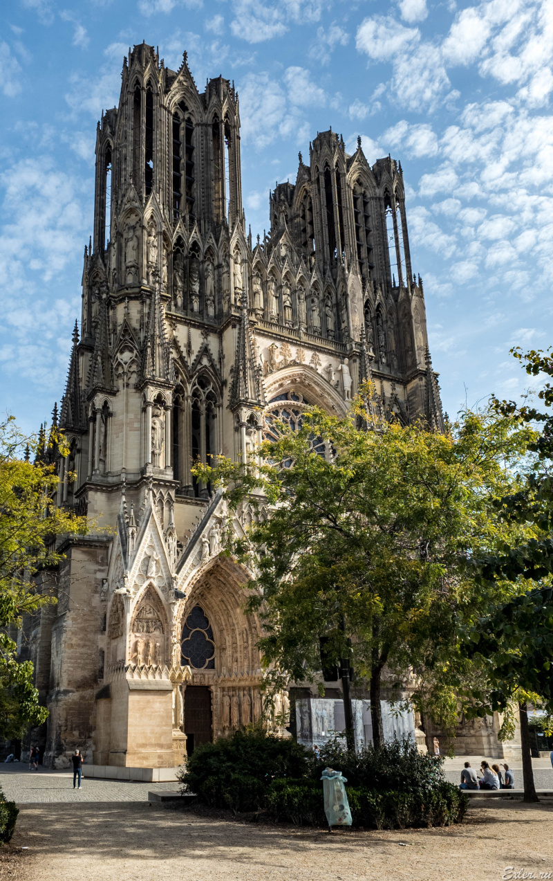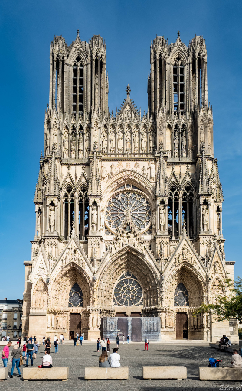 Кафедральный собор города Реймса (Notre-Dame de Reims) - совершенно уникальное сооружение, один из самых известных памятников готической архитектуры Франции. Он был построен в XIII веке (позже Собора Парижской Богоматери) на месте собора  V века, в котором крестился франкский король Хлодвиг I, а потом в 816 году крестился сын Карла Великого Людовик Благочестивый.
