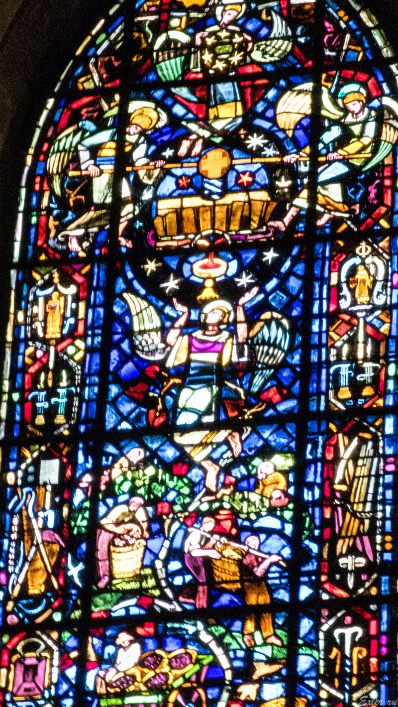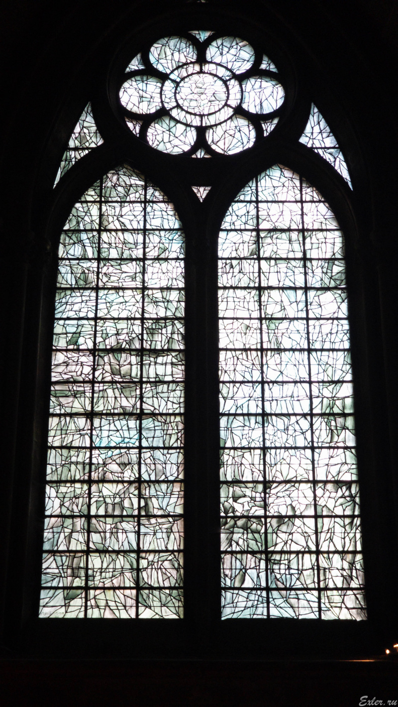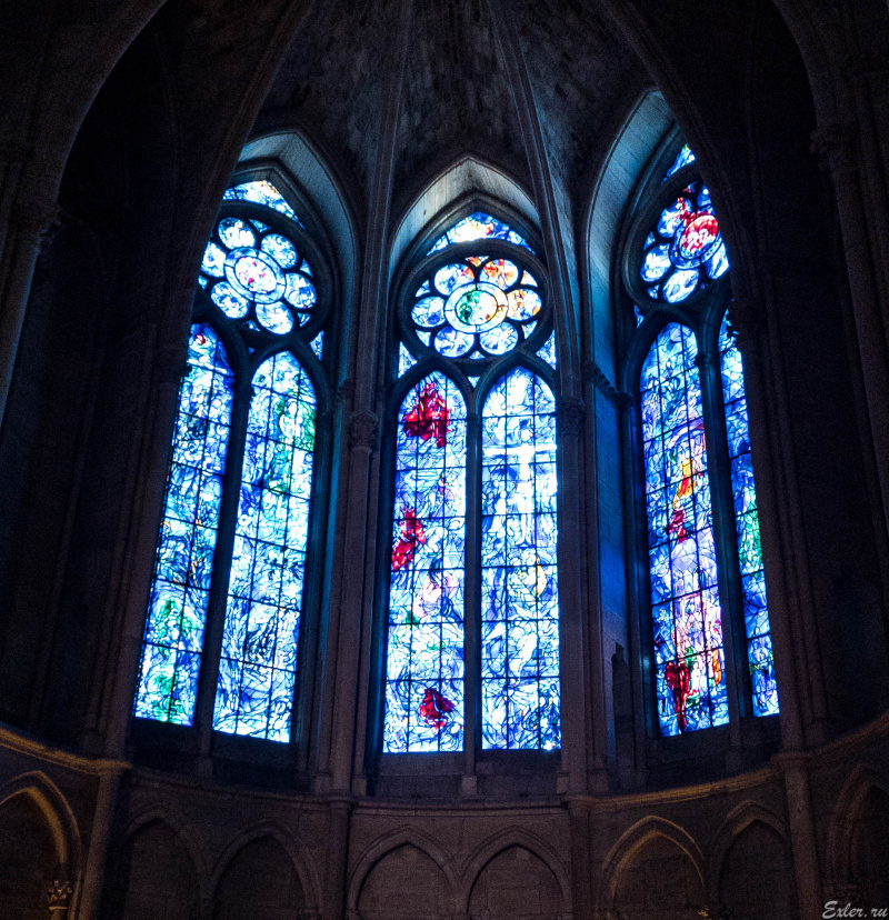 Вот эти витражи западной части делались по эскизам Марка Шагала.