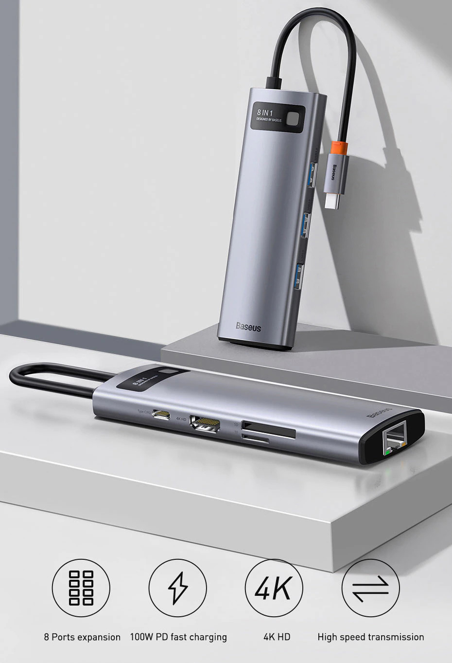Акция на стильный, функциональный CAHUB-CV0G Type-C хаб от компании Baseus.
