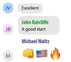 А потом Голдбергу это все надоело, и он просто опубликовал в своем издании скриншоты с этого обсуждения. Которые неопровержимо свидетельствовали о том, что там обсуждались именно сверхсекретные данные, которые он видел своими собственными глазами, потому что ему приглашение в эту группу отправил Майк Уолц. И все присутствующие в группе - это 18 человек - видели личный телефон Голдберга, который он использует в Signal. Причем Голдберга Уолц пригласил аж два раза. Сначала он ему прислал ссылку присоединиться к Signal, а потом прислал приглашение в этот секретный чат.