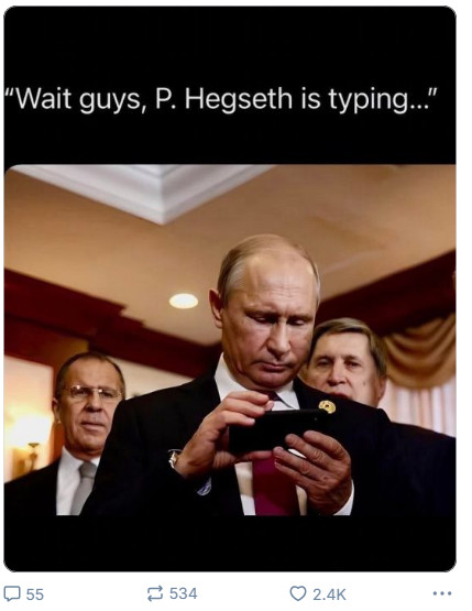 REPORTER: Oh, totally. Who among us hasn’t accidentally added a random person to a classified war room? Happens all the time. Next thing you know, grandma’s in the chat asking why the nukes are moving toward the Baltic Sea.
