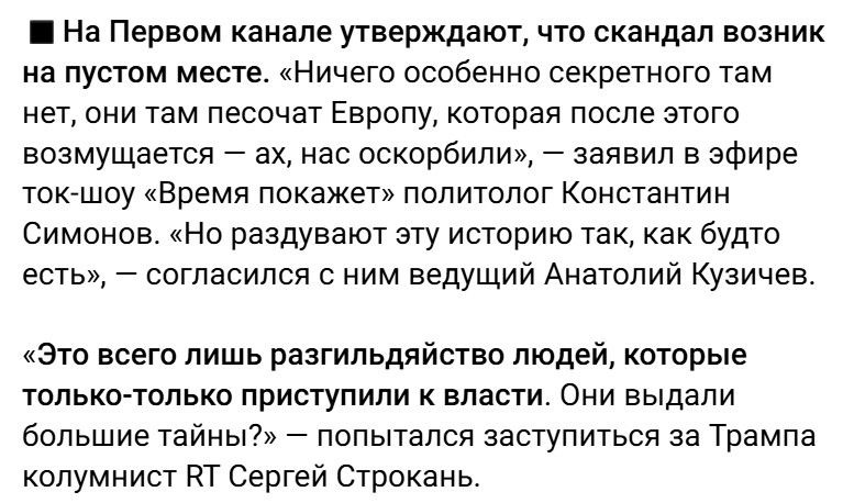 Единственное, чем эти разродились - нелепыми постами под копирку "ква-ква, как это журналист посмел постфактум поделиться сообщениями из чатика в сигнале". Похоже, трампизм разъедает мозги сильнее, чем служба в лахте.