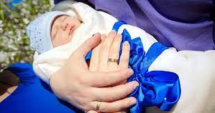 Ленточкой конверт с ребенком повязывали. Розовой или голубой.