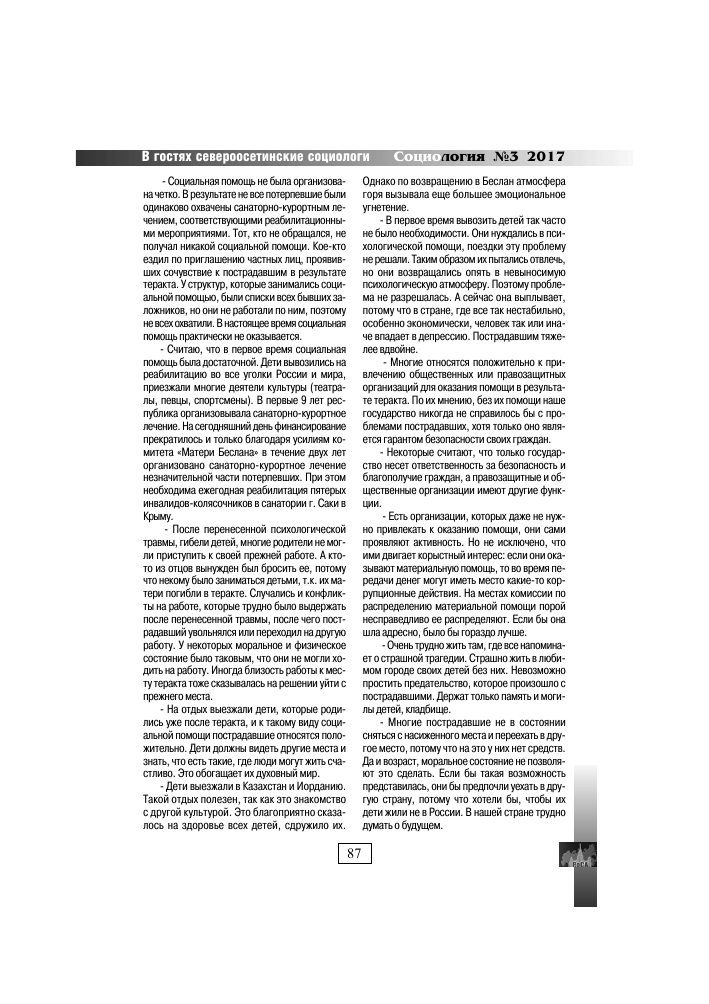 ОЦЕНКА НАСЕЛЕНИЕМ Г. БЕСЛАНА ЭФФЕКТИВНОСТИ ОКАЗАНИЯ СОЦИАЛЬНОЙ ПОМОЩИ ПОСТРАДАВШИМ В ТЕРРОРИСТИЧЕСКОМ АКТЕ