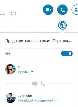 Некоторое время назад компания Microsoft запустила в Skype тестовую версию автоматического перевода - как для сообщений, так и для разговоров. Соответствующая пиктограмма появилась в правом верхнем углу, там функцию перевода можно активировать для каждого абонента, указав при этом, на каком языке общаетесь вы и на каком абонент.