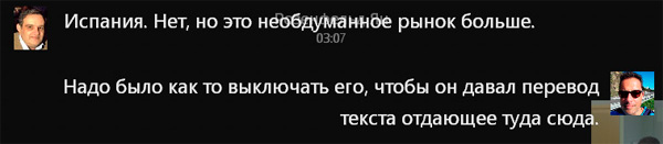 Но с переводами чатов - и так все понятно. Мне интересно было попробовать широко разрекламированную возможность автоматического голосового перевода. Но вот тут началась веселуха. Потому что тут распознавалка голоса работала, мягко говоря, очень криво.