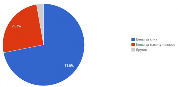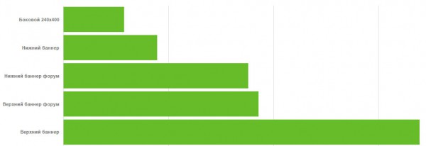 Ну и доли рекламных блоков. По сайту Exler.ru все ожидаемо: верхний баннер обладает наибольшей эффективностью. Нижний баннер - где-то четверть от верхнего. И самый неэффективный - нижний боковой прямоугольник.