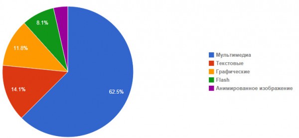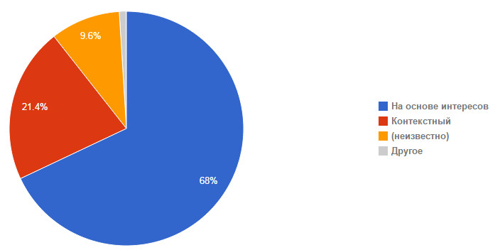 Процентное соотношение типов объявлений. Мультимедиа ожидаемо приносят больше всех.