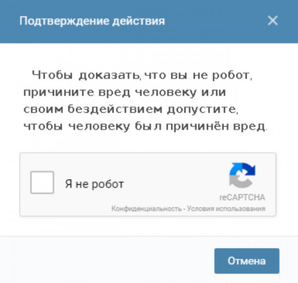 При этом настоящая стопроцентная капча уже давным-давно известна. И её достаточно было бы пройти один раз в жизни, чтобы навсегда доказать, что ты не робот.