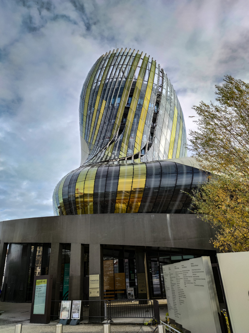 Вчера с утра пошел прогуляться по Бордо - наша группа должна были прилететь только в 14 часов. Отель стоит в промышленной зоне, так что ничего особо интересного я во время прогулки толком не обнаружил, однако когда смотрел карту, увидел, что где-то в часе ходьбы от отеля находится "Город вина" (Cité du Vin). Вот это уже интересно, подумал я и потопал туда.
