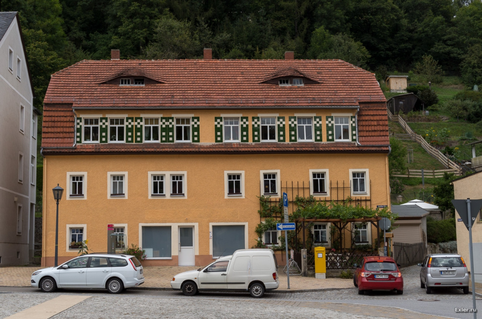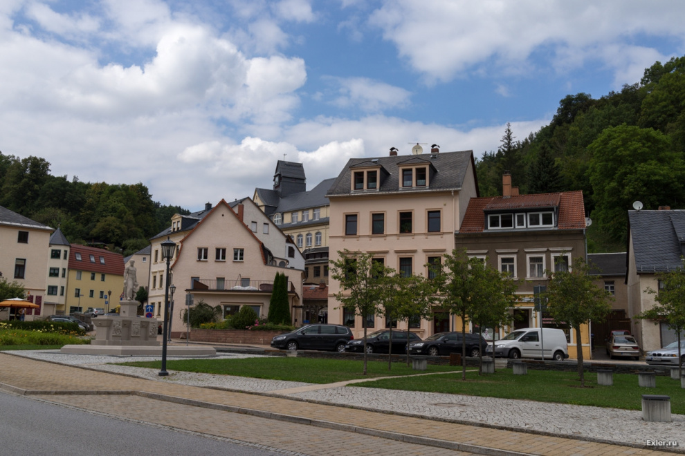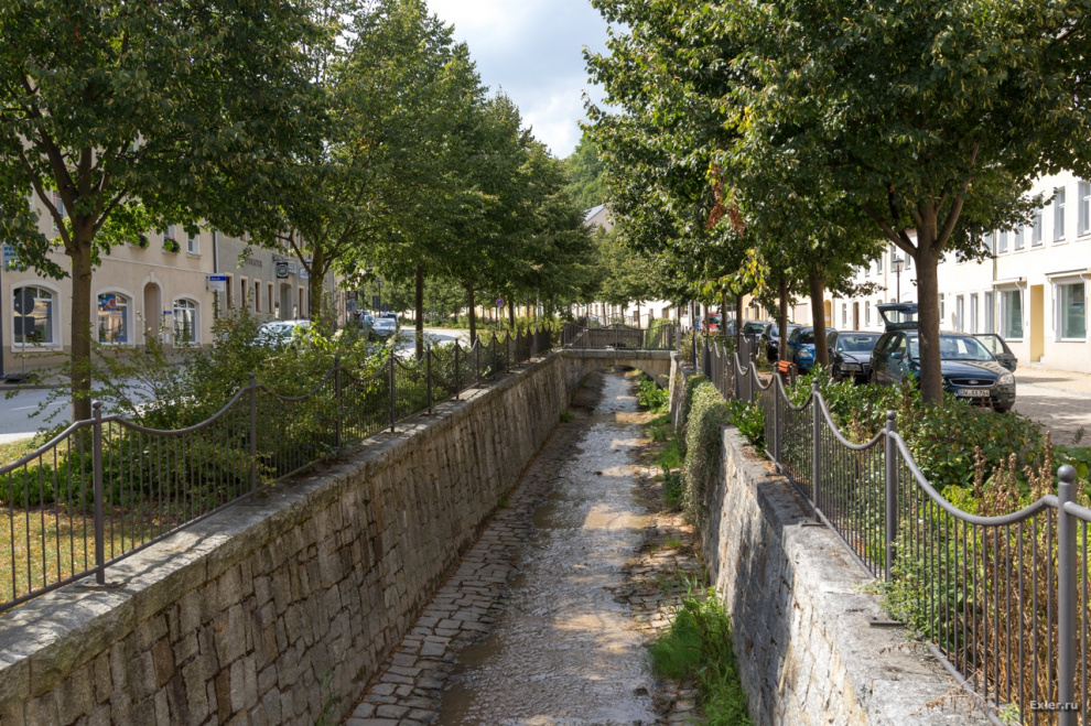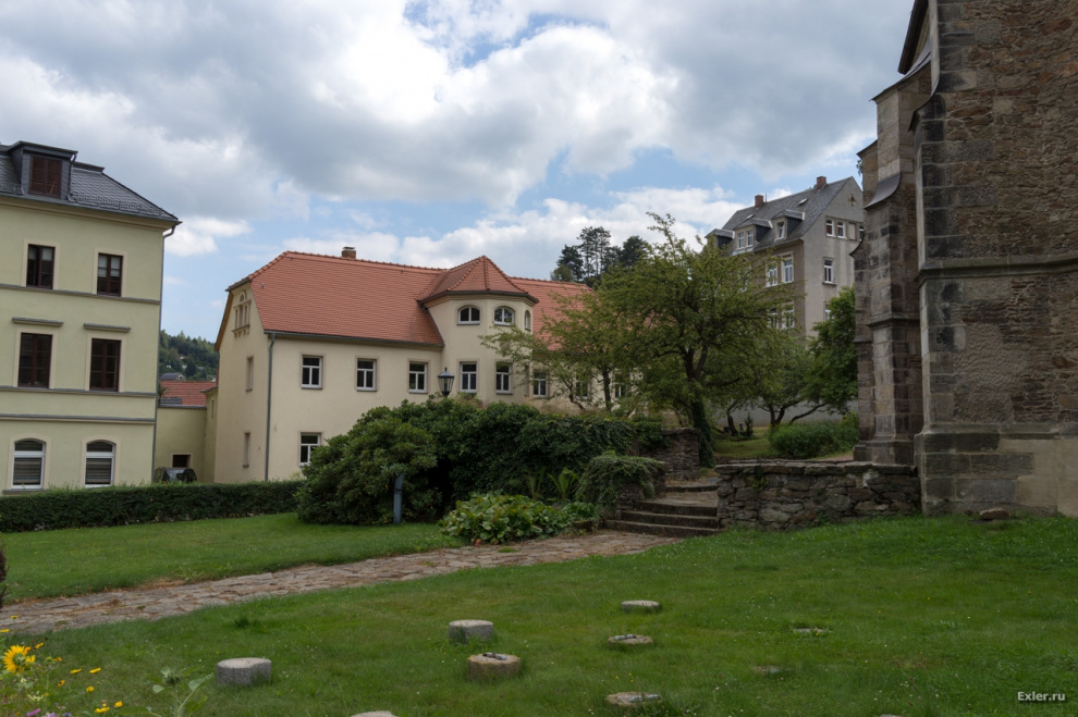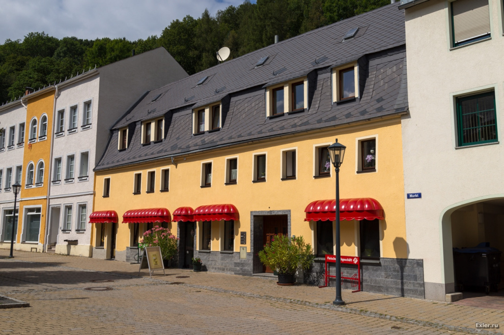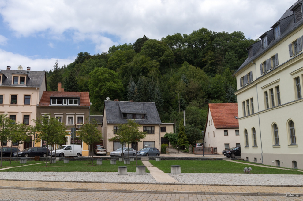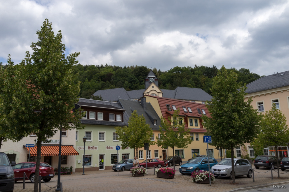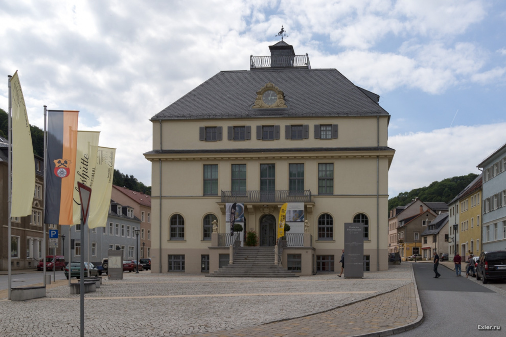 Идешь-идешь мимо этих небольших домиков, вдруг раз - открывается одно из здоровенных зданий часовой мануфактуры. Причем как только мы к нему вышли, в нем на весь город завопила сирена - мы аж офигели. Потом спросили в музее, что это такое. Нам ответили, что не знают, но на заводе эту сирену включают каждый день ровно в 15 часов - видимо, проверяют, работает она или нет. Я могу их успокоить: работает она хорошо, наверняка сирену слышно аж в Дрездене.