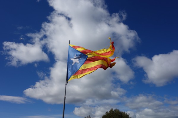 На видовой площадке гордо реет каталанский флаг - тут они повсюду. На любом доме хотя бы из одного окна или балкона свисает каталанский флаг: как знак национальной самоидентификации и напоминания о том, что Каталония - это не Испания.