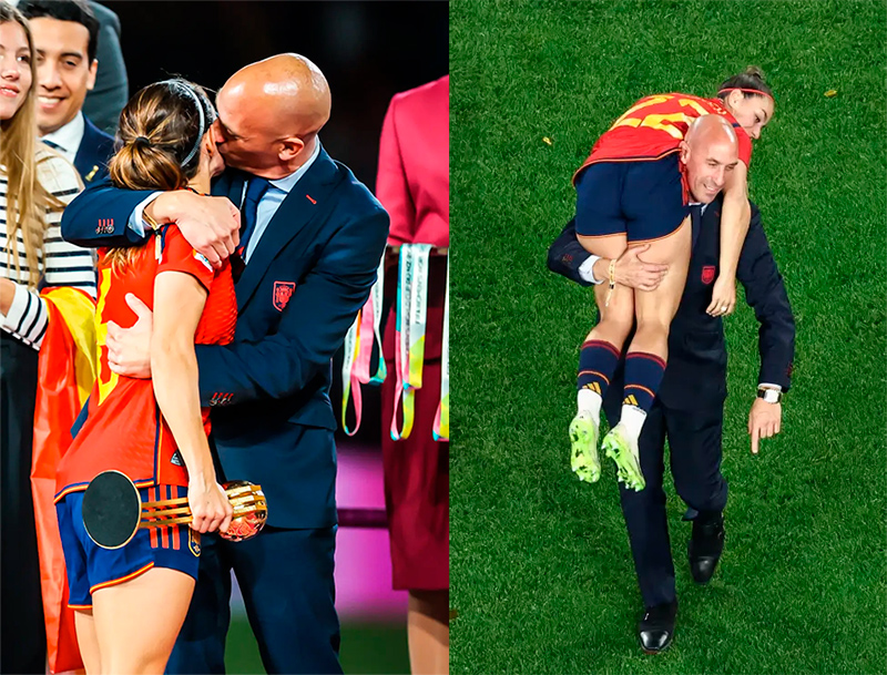 Шум после этого поднялся изрядный. Фотографии облетели почти все крупные испанские СМИ, в соцсетях это все очень бурно обсуждали. Рубиалес сначала пытался отшучиваться, однако потом, когда на него подал жалобу профсоюз спортсменов, в котором состоит Дженни Эрмосо, начал приносить вялые извинения, которые уже никому не были нужны, потому что было ясно, что он это делает просто пытаясь спасти свою сильно подгорающую пятую точку, ну и в итоге вчера FIFA открыла по этому поводу дисциплинарное разбирательство, в котором Рубиалеса обвиняли в нарушении статей 13.1 и 13.2 Дисциплинарного кодекса FIFA. При этом Рубиалесу сразу недвусмысленно дали понять, что или он сам немедленно уходит в отставку, или не позже пятницы его уволят с занимаемого поста.