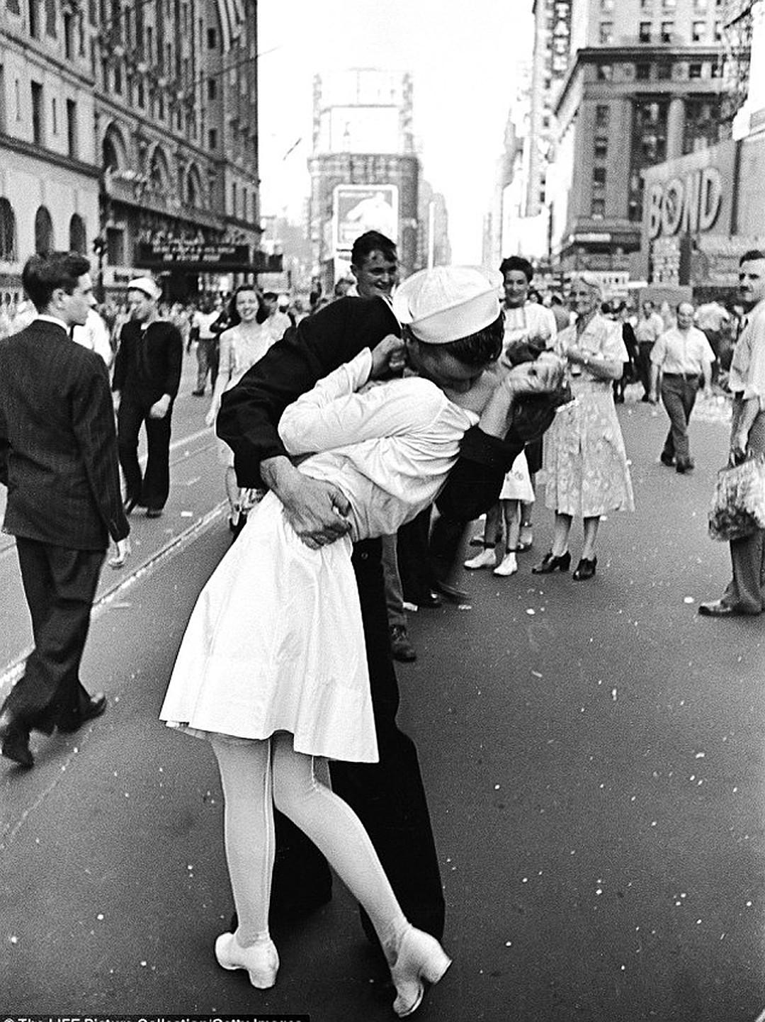 Обнимали - да. Поцелуев не припомню. Но это и не «первая стоящая рядом женщина». Они явно хорошие знакомые.