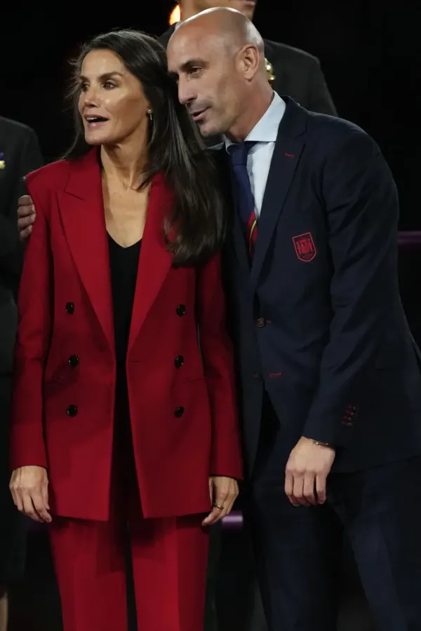 Горячий испанский мачо Рубиалес на самом деле там резвился вовсю. На трибуне он не слишком отечески приобнимал королеву Летисию