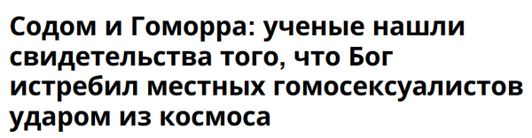 Но мы-то - знаем. Пошел почитать оригинал. Археологические раскопки в районе Мертвого моря. Обнаружены какие-то древние поселения, характер разрушения которых показывает, что они, судя по всему, были уничтожены метеоритом. Всё!
